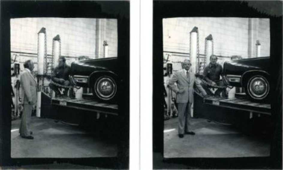 New Frame Machine in ~1970. Purchased from Brownie MacDonald. Albert Loewen & Abe Doerksen, with Alvert's Chrysler Pictured.